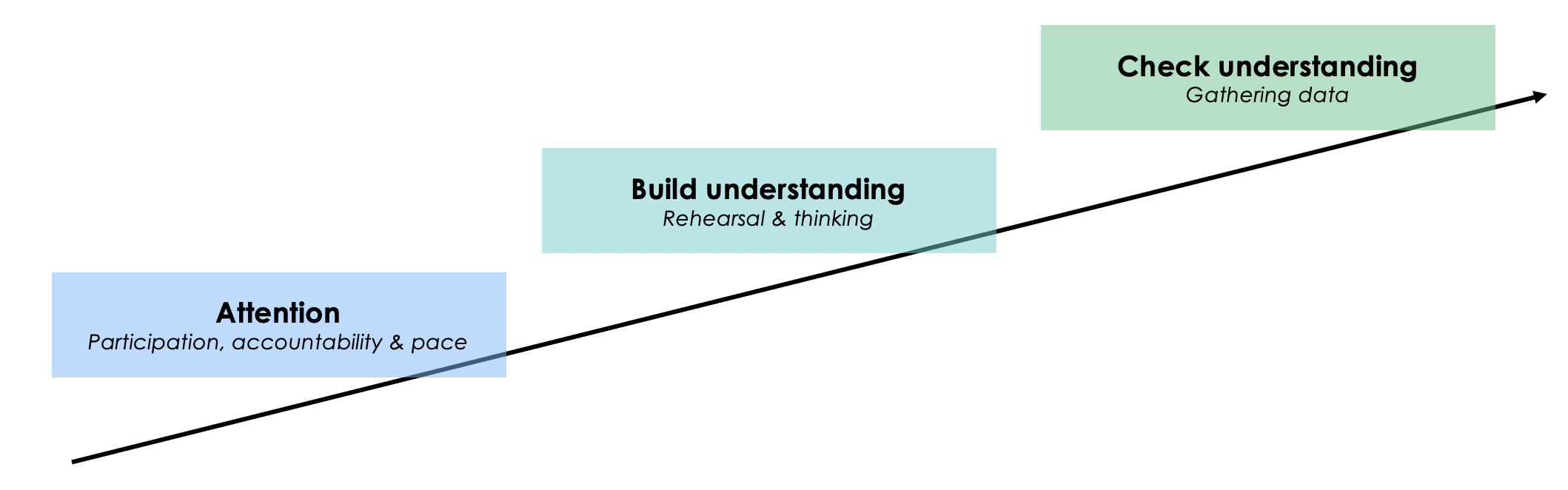 The three phases of questioning might take 1 minute or the whole lesson! Depends on the chunk of learning that the teacher wants to happen.